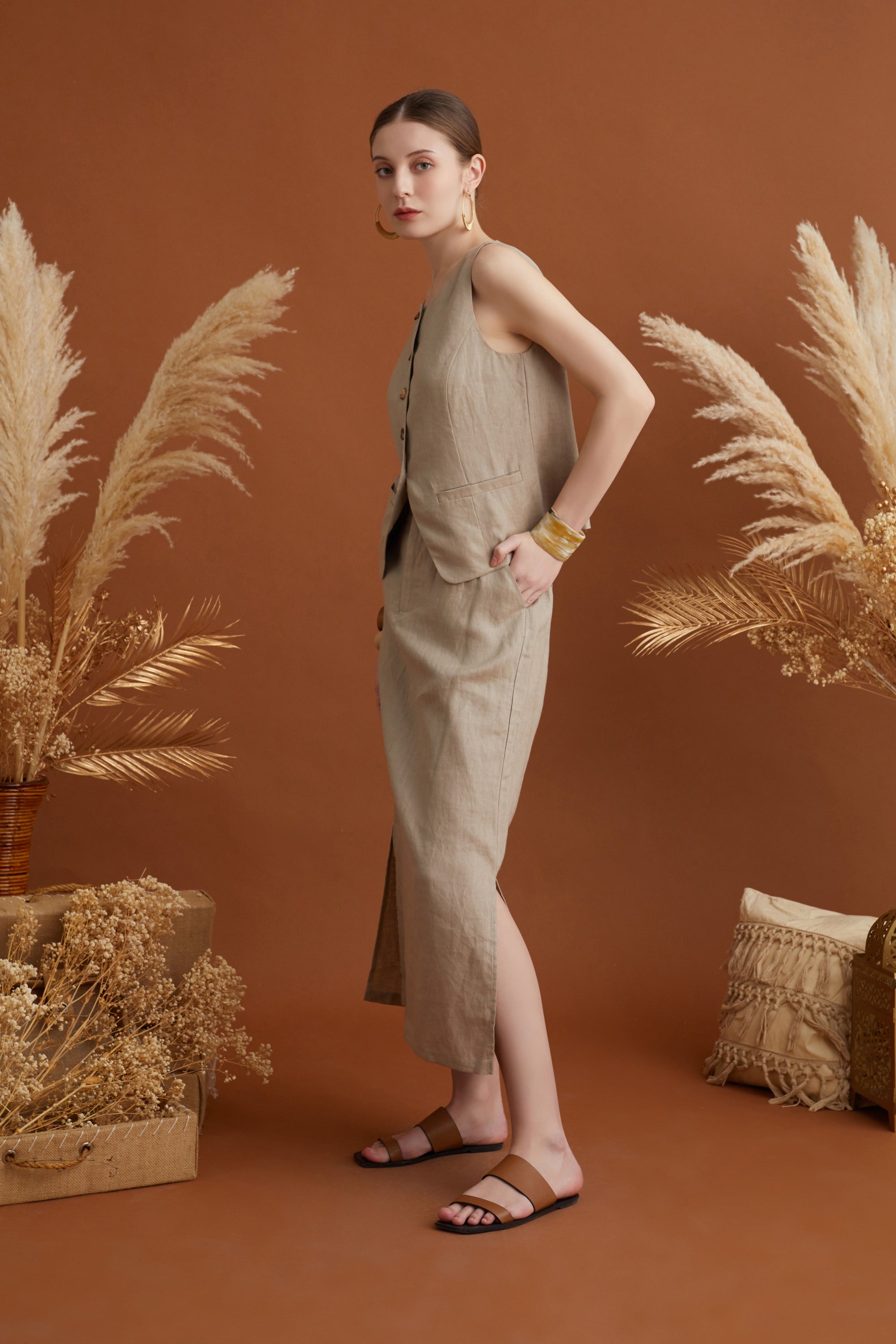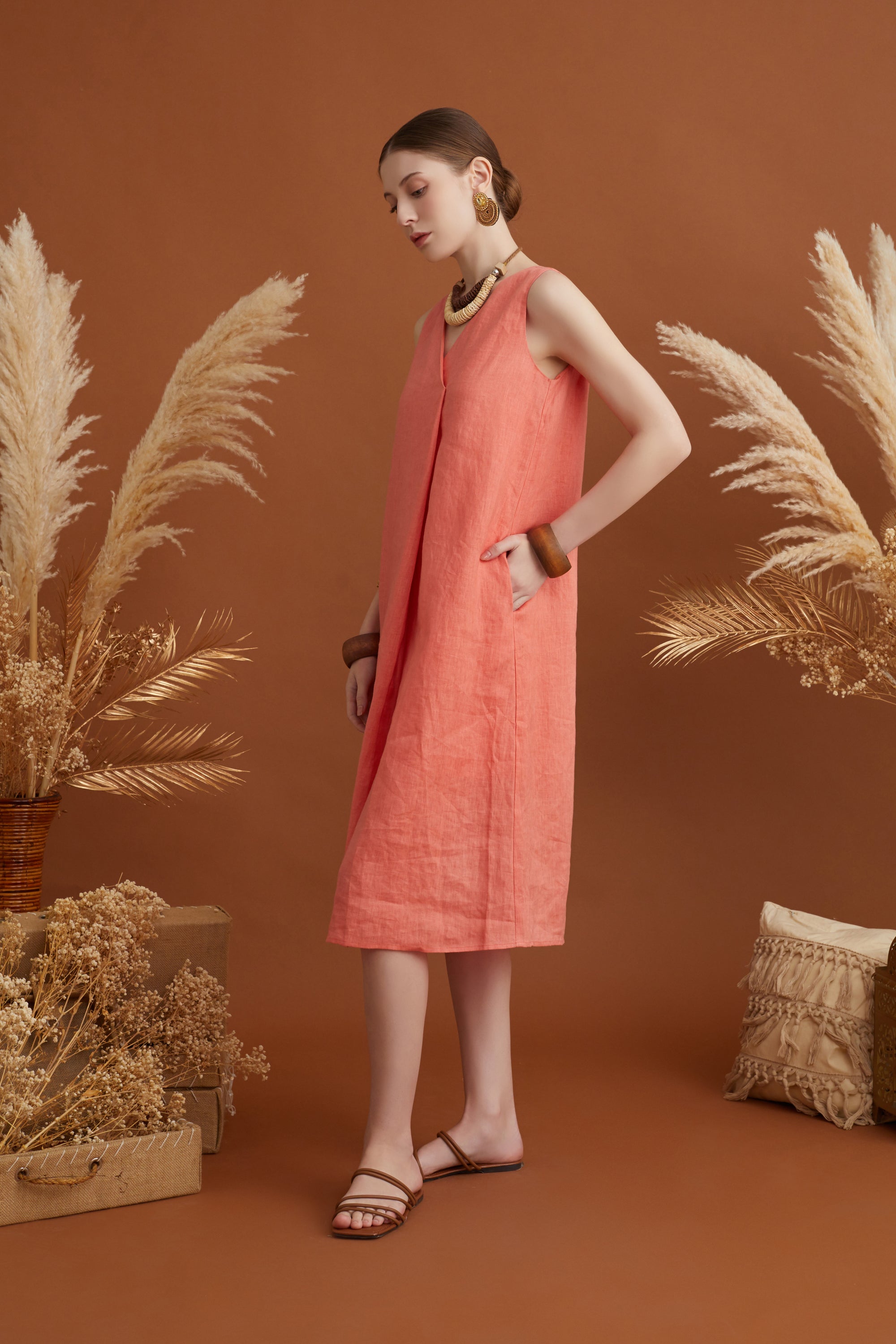 Ellie Side Pleat Linen Dress SaleEllie Side Pleat Linen Dress